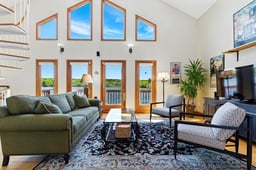 This waterfront 3-bedroom, 2-bath, ~2336 sq.ft. retreat is designed for relaxation and connection, with sunset views from every room and your own one-of-a-kind cantilevered deck/dock for dining right on the water. Entertain on the stone patio with pizza oven, or unwind in the 3-season sunroom while watching the sun melt over the lake.